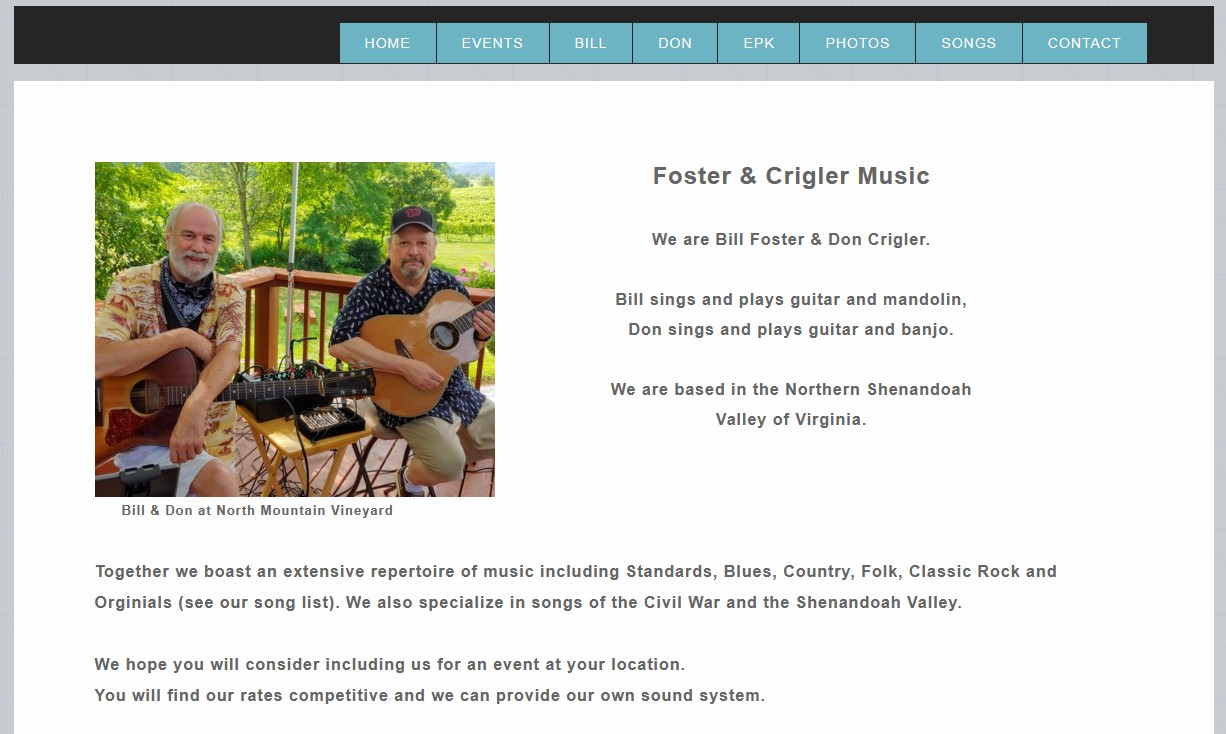 Bluegrass Music for Virginia's Northern Shenandoah Valley |